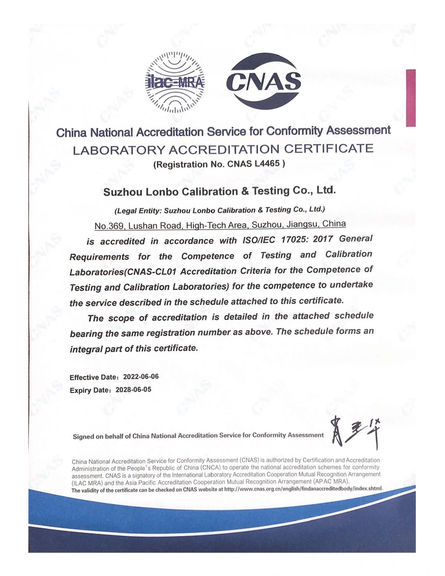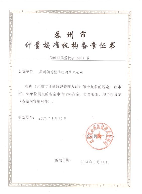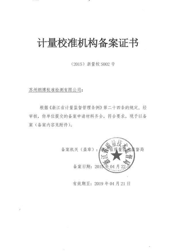 余姚朗博計量檢測有限公司是余姚計量檢測、余姚儀器檢測、余姚儀器校準、余姚計量檢測、余姚儀器校正、余姚儀器計量校驗的計量校準檢測技術服務公司。余姚朗博計量檢測有限公司屬于朗搏校準檢測集團公司,集團公司另外下轄蘇州朗博校準檢測有限公司和北京朗博校準檢測有限公司,另外在南京、揚州、南通、廣州東莞、山東濰坊、安徽合肥、越南北寧等地設置辦事機構。朗博校準檢測集團通過中國合格評定國家認可委員會(CNAS)及國防科技工業實驗室認可委員會(DILAC)認可與授權,專業從事計量校準、檢測(包含軍用設備檢測)和維修服務的綜合實驗室,可以開展900多個項目的校準和檢測技術服務,所出具的校準證書及檢測報告獲得國際實驗室認可合作組織多邊協議(ILAC-MRA)成員中48個國家和地區的認可。校準檢測,實驗室建有幾何量、熱工、力學、電磁、無線電、時間頻率、振動、聲學、光學、理化等專業校準實驗室。實驗室嚴格按照國家相關檢定規程、校準規范、國家標準或儀器說明書技術指標的要求等進行全面的校準檢測;實驗室的校準檢測工作完全滿足ISO/IEC17025和ISO9000的要求,實驗室所出具的第三方公正的校準證書及檢測報告獲得國際實驗室認可合作組織多邊協議(ILAC-MRA)成員中48個國家和地區的認可。